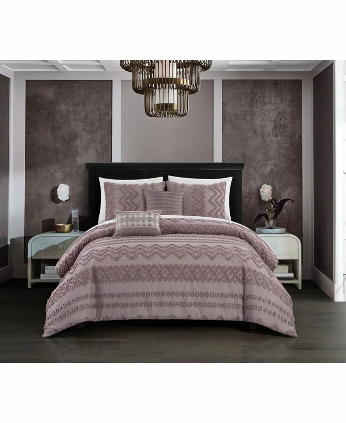 Take your bedroom decor in a new direction with the sophisticated style of the Addison comforter set from Chic Home. This stylish comforter features a Jacquard chevron and geometric pattern design on the face. Two unique decorative pillows and design coordinated shams complete the look.
