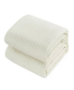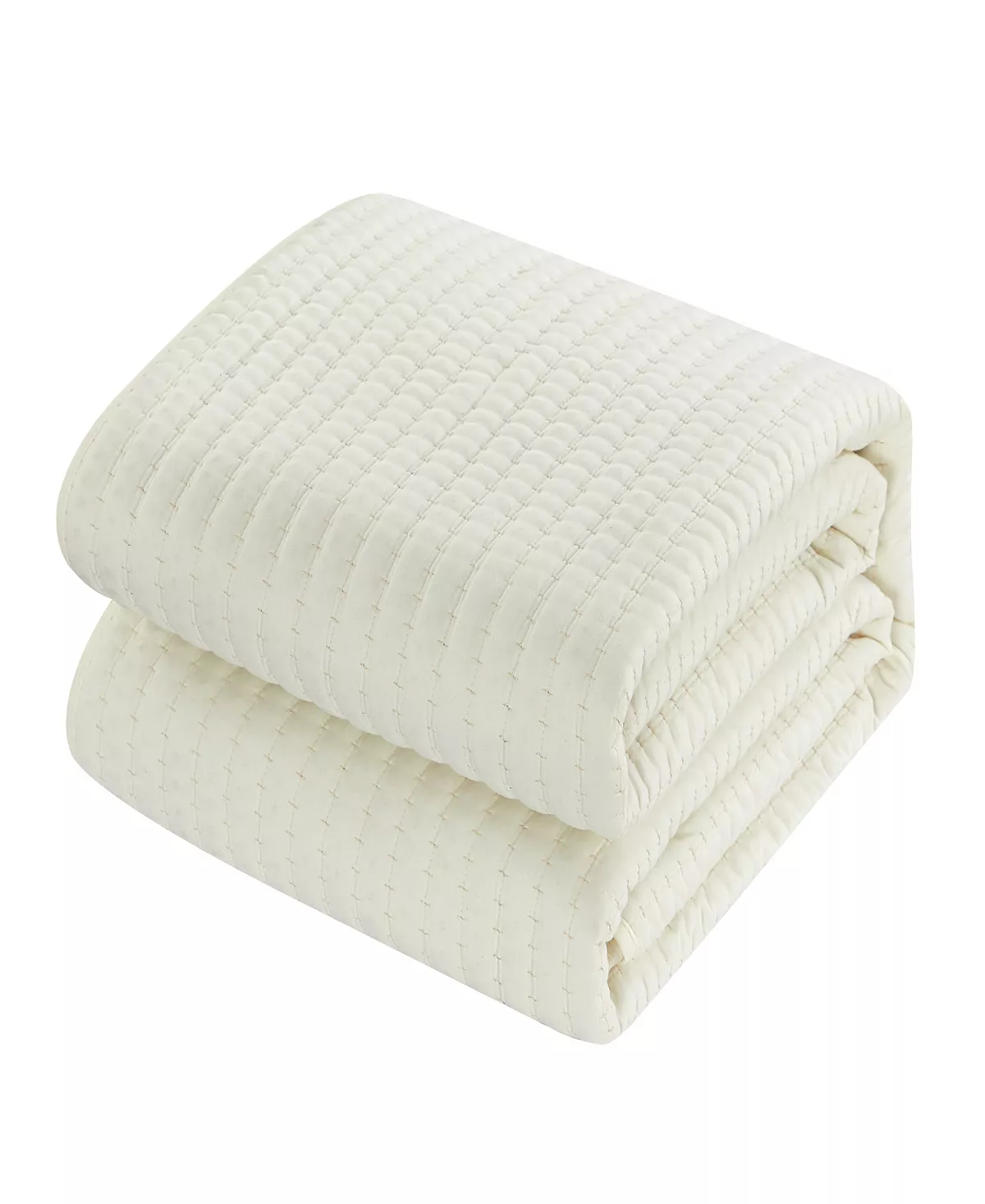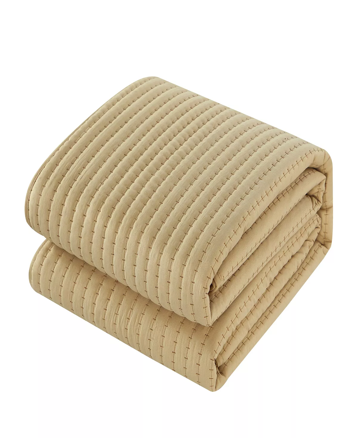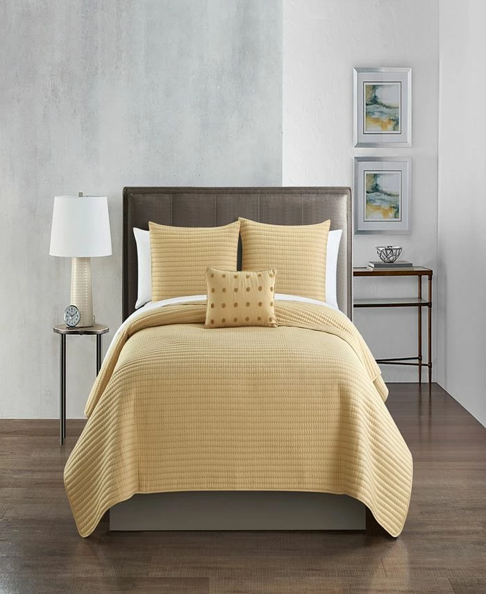 Give your bedroom a fresh, clean look with the laid back style of the Hayden quilt set from Chic Home. This casual quilt features a striped box-stitched quilted design on the face. Two design coordinated pillow shams and an embroidered decorative pillow complete the look.