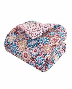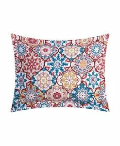 - Boho-inspired medallion print reverses to a modern geometric pattern with reversible shams and embroidered decorative pillow