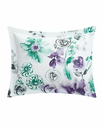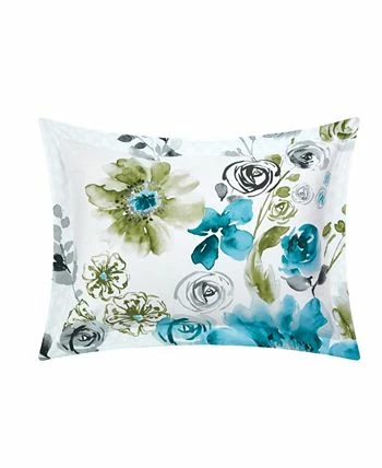 - Beautiful large scale floral print reverses into a geometric scale pattern with shams and deco pillows