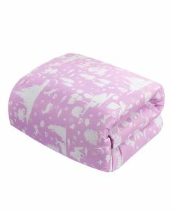 A magical comforter set perfect for back to school with everything you need to a transform a kid’s or young adult’s bedroom. The comforter features a two-tone Fantasy Forest fairy tale theme print design complete with princesses, unicorns and a field full of magical details. Design coordinated pillow shams, a heart shaped decorative throw pillow and a fleece throw blanket with a heart pattern print are included to complete the look.