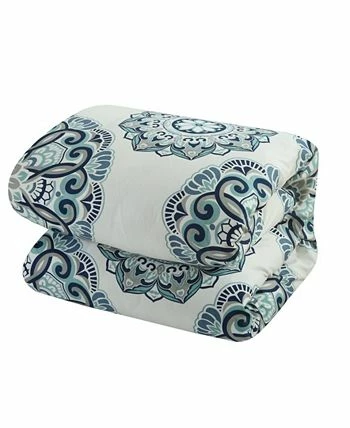 Large-scale medallion modern pattern duvet cover set in fashion color tones reverses into a simple yet bold geometric pattern. Coordinated pillow shams to complete the look. Zipper closure design for easy care.