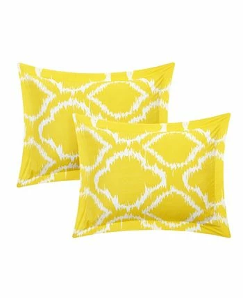 A designer inspired two-tone Ikat print bedding collection with everything you need for that chic trendy look. Reversible two-tone design features yellow on white Ikat diamond print on one side and its inverse on the flip side. Included are trendy reversible shams and an embroidered deco pillow to complete the look. Zipper closure for easy washing