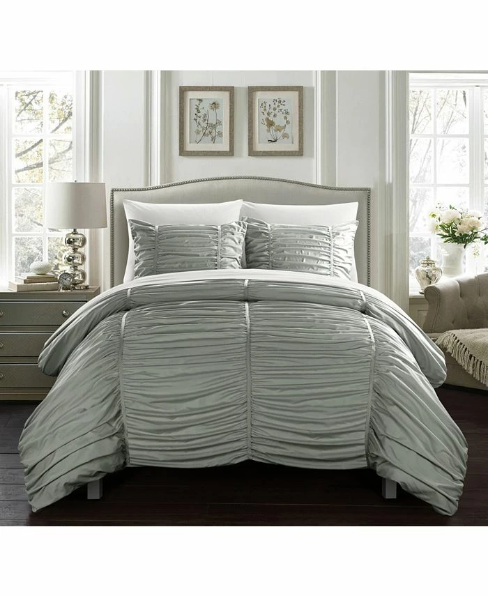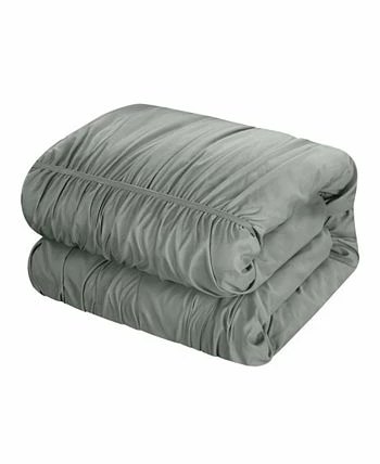 A contemporary comforter set with just what you need for a bold, fresh bedroom décor makeover. The comforter features a modern striped, ruched ruffled pattern design. A super-soft design coordinated pillow sham is included to complete the look.