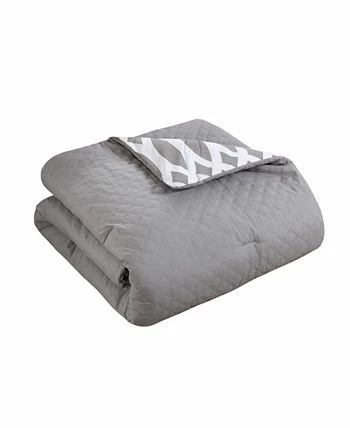 - Diamond embroidered quilting reverses to a modern printed design with design coordinated deco pillows