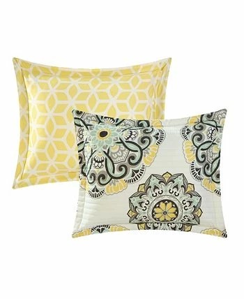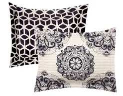 A reversible large scale medallion modern pattern in fashion color tones, which reverses into a simple yet elegant geometric pattern so you can use to flip and use on either side depending on your decorating mood. Enjoy super soft microfiber fabric in this complete duvet cover set so you can fill with your favorite down or down alternative comforter. Features a zipper enclosure for easy washing and care.