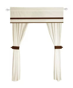 - 1 Fitted sheet 60″”W x 80″” + 15″D Deep pocket, 2 Pillow cases 21″”W x 27″” + 3″D , 4 microfiber panels – 40″W x 84″D , 2 Valances – 18″W x 60″D , 4 tie backs – 3″W x 18″D