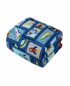 An adventurous comforter set perfect for back to school or college with everything you need to a transform a child’s bedroom or a dorm. The comforter features a quilted patchwork design with Space Explorer theme complete with space shuttles, spaceships, UFOs and planets. Design coordinated pillow shams, a flying saucer shaped decorative throw pillow and a fleece throw blanket with a star pattern are included to complete the look.