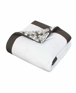 Enjoy a modern and sleek look with this black and white hotel collection bedding set that reverses into a large scale medallion two tone pattern. Elegant details such as contrast red piping, decorative pillows with tassels on the corners, stitch like embroidery details and a coordinating complete four piece coordinating sheet set. This elegant complete set has everything you need to design a contemporary modern bedroom oasis.