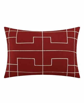 - Elegant hotel collection design reverses into large scale geometric two-tone pattern with embroidered details