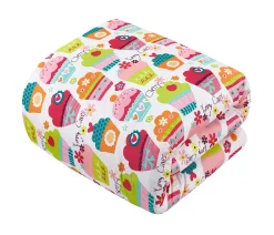 A fun and colorful comforter set perfect for back to school or college with everything you need to a transform a child’s bedroom or a dorm. The comforter features a Sweet Dreams pastry theme design complete with rows of scrumptious tasty muffins. A muffin-shaped decorative throw pillow complements the comforter. Design coordinated pillow shams and a fleece blanket with a pattern print are included to complete the look.