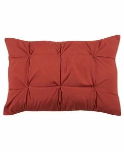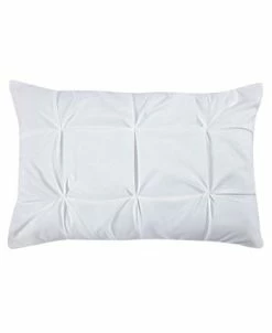 - Geometric patterned print reverses to a classic pin tuck technique includes elephant embroidered decorative pillow