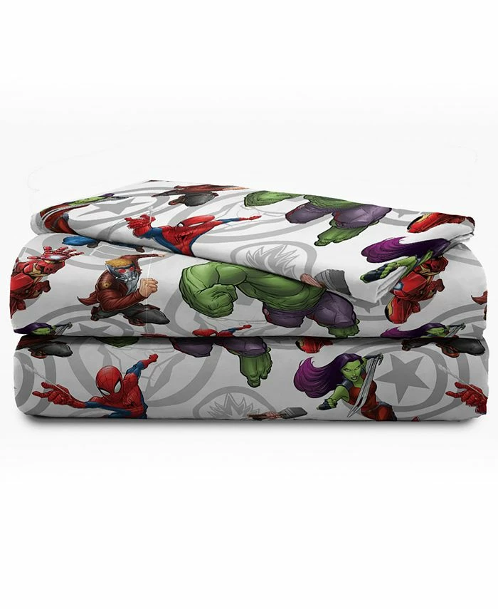 Release the full power of the Avengers and transform your child’s bedroom with these super soft Marvel Avengers Team microfiber twin sheet set. This super hero bedding sheet set will make any young Avengers fan jump into bed. Each 3 piece, super soft twin sheet set features Hulk, Thor, Captain America, Iron Man, Star Lord, Black Widow, & Gamora. The bold colors and modern design will enhance the existing décor of any kid’s bedroom.