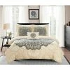 Bring home a classic and romantic look with the Tina 8 Piece Comforter Sets from Hallmart Collectibles featuring a coordinating sheet set and bed skirt to fully outfit your bed. Please see the bullets below for included coordinates by bed size. This Comforter Set features a gorgeous floral print that reverses to a solid color.