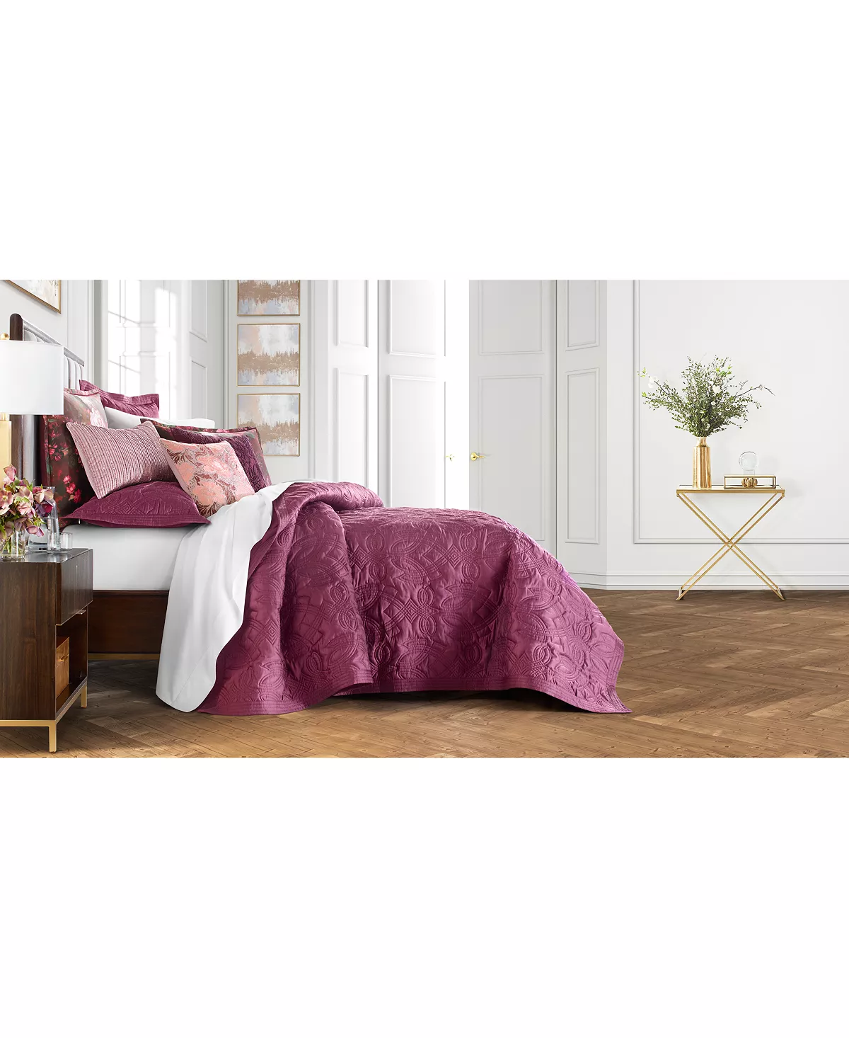 - The rich plum color makes this coverlet into a statement piece. The edges are finished with a large flange and channel quilting, details that are sure to delight.