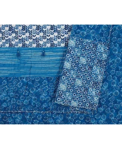 The Jessica Azra Quilt is made of pieced cotton fabrics all printed with block print inspired motifs in shades of indigo blue for a perfectly zen bedroom look. Indigo blue tassels finish off the look.
