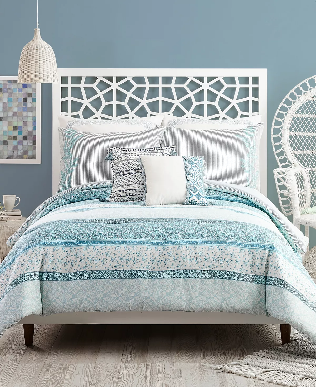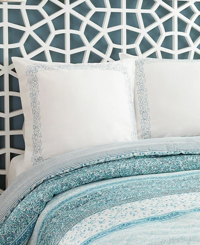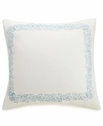 Coordinating euro shams with blue embroidery on cotton canvas.