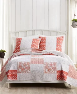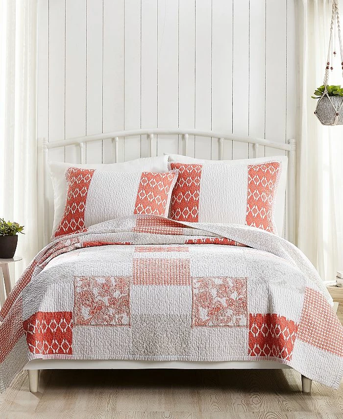 Inspired by vintage silk scarves the Jessica Simpson Lago Quilt features pieced cotton fabrics with bohemian, feminine prints in shades of dusty grey and coral.Â