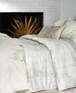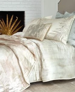 The cozy silk faced quilt is illustrated with a digitally printed ivory painterly watercolor and solid cotton reverse.