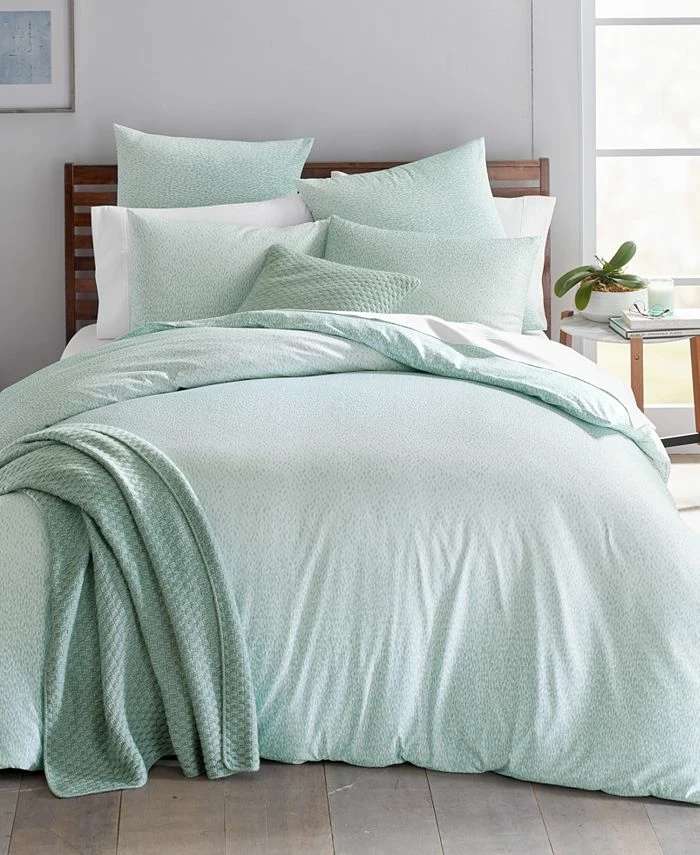 Watercolor dots gradient down the design in tones of earthy greens giving visual interest to the bed. Our super soft cotton bedding enhances your comfort at night.