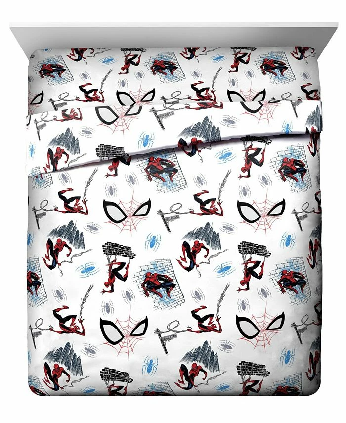 Watch Spiderman spring into action when adding this Spiderman crawl sheet set to your bedding. Sheets show Spider-Man in a variety of poses, crawling up walls and swinging from his webs on a white ground.