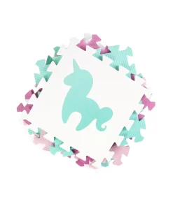Using soft, playful foam, Tadpoles Unicorn Play mat Set provides a fun, safe environment for your little one. Made of large, interlocking foam pieces with removable shaped centers, the mats create a soft base for your child and add a great look to any room. Includes 16 foam frame pieces, shaped center pieces and 16 border pieces.